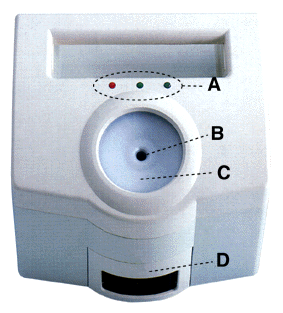 A-バッテリー表示ランプ フル充電 溶断処理可能 要バッテリー充電 B-注射針挿入口 C-注射針挿入プレート D-ダストボックストレイ E-電源スイッチ F-充電プラグターミナル G-充電アプラグター P-交流100V電源プラグタ H-ダストボックス D-ダストボックストレイ 注射針溶断処理した際に出来る「溶断屑」を入れる H-ダストボックス 防臭フィルターを