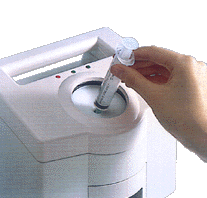 1-本体の電源スイッチを「ON」にします。 2-針の付いた使用済み注射器を、