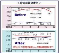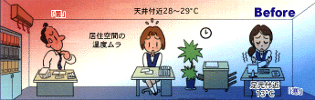 設置前には 天井付近あるいは、 1.5〜1.8m付近 足下付近の、各温度が 非常に大きな温度差です。