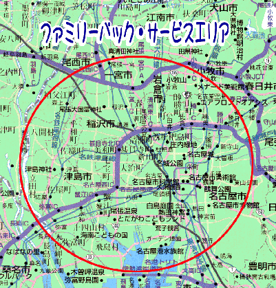 ☆ファミリーパック サービスアリア 名古屋市、津島市、稲沢市、一宮市、 岩倉市、 大治町、西枇杷島町、西春町、 師勝町、豊山町、祖父江町、平和町、 弥富町、佐屋町、佐織町、春日町、 甚目寺町、新川町、美和町、 七宝町、清洲町、 八開村、立田村、十四山村、飛島村 これ以外の地域につきましては、メール、お電話にてお問い合せ下さい。