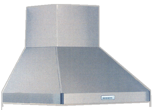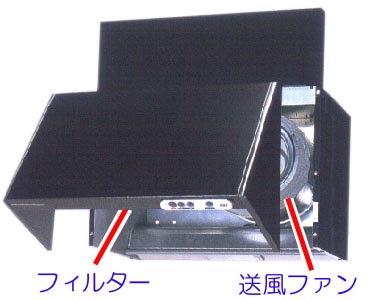 業務用では、清掃等を考慮されこの図のようにアルミ製のフードが主流です。 |