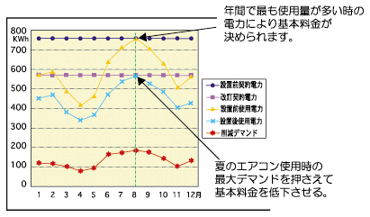 5-設置後は設定した減少電気量によって、契約電力(基本料金)が下がります。 |